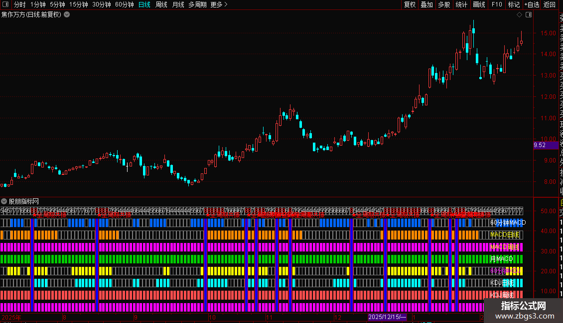 DRAWTEXT(CURRBARSCOUNT=10,14,'kdJ日线'),COLORFFFFFF;