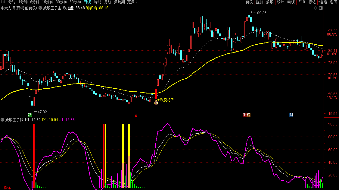 2、行情见底确定之后,主图妖股将飞出现代表即将大幅上涨。