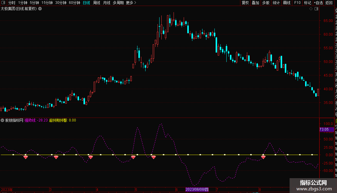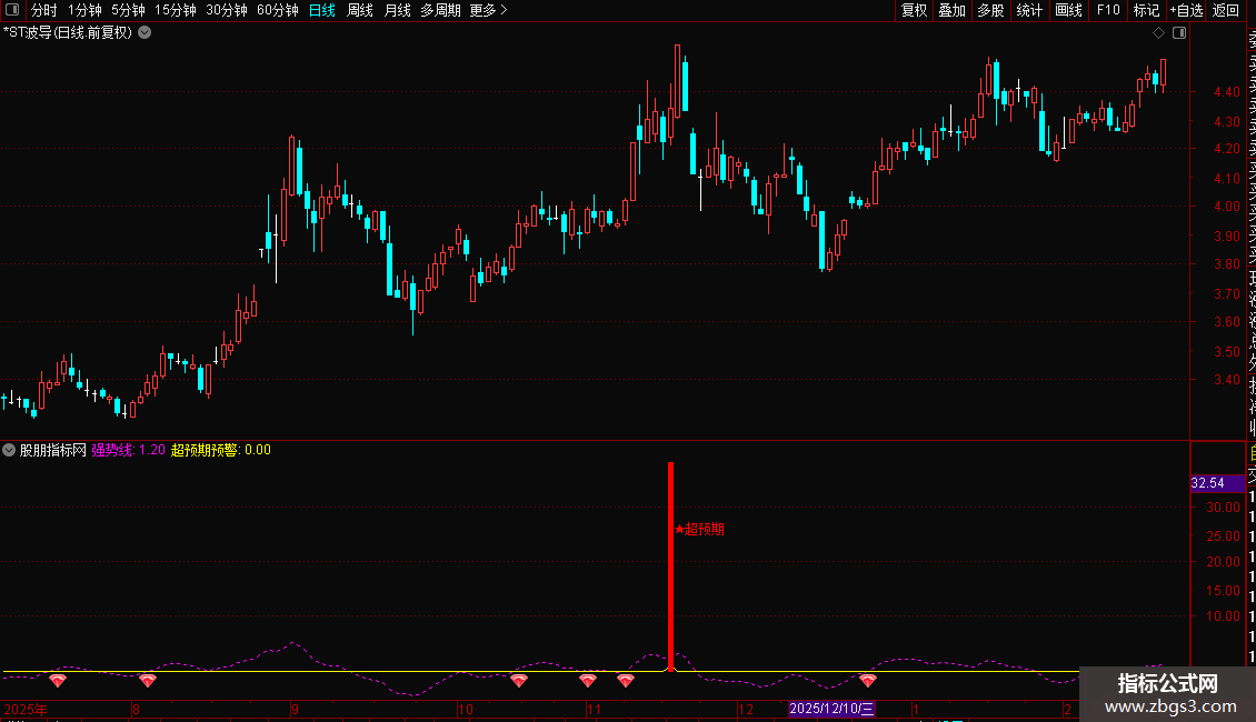 DRAWICON(CROSS(强势线,超预期预警),超预期预警*1.002,25);