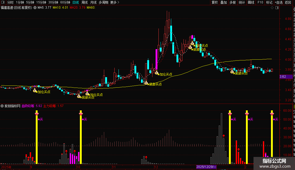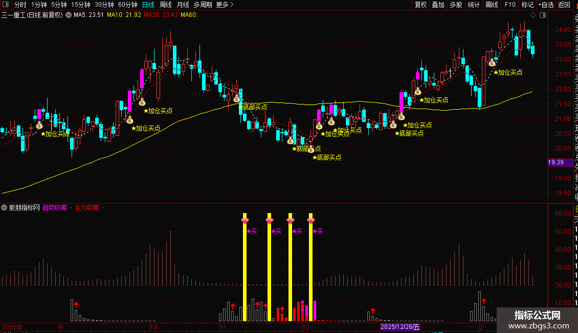 2. 副图公式搭配主图使用,确认吸筹信号与买点的共振;
