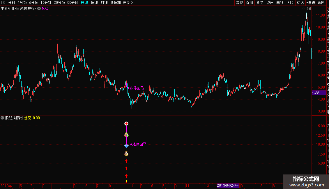 DRAWTEXT(选股,10,' ★涨停回马'),COLORFF00FF;