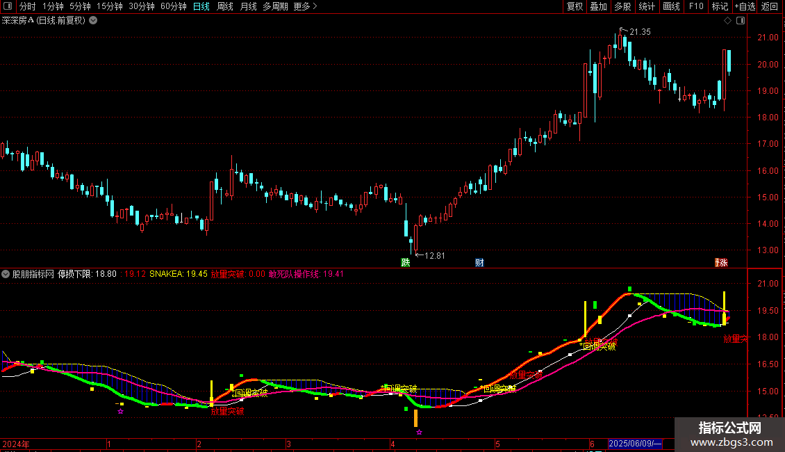 5. 辅助指标:包含“敢死队操作线”(24日均线)作为中长期趋势参考,以及布林带相关的超跌判断逻辑。