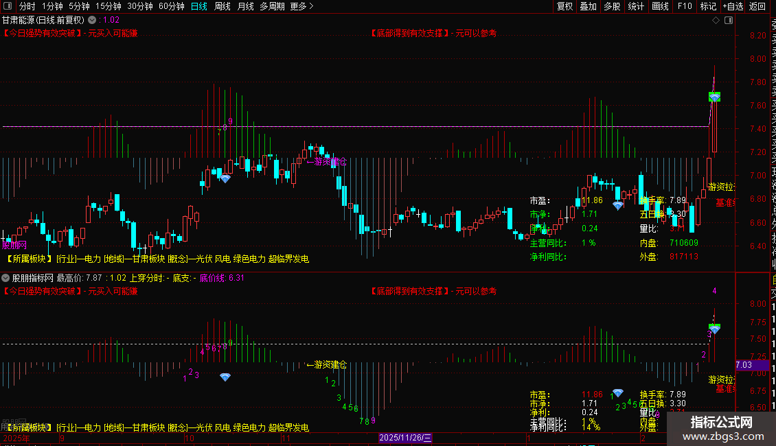 该指标在主图界面整合多维度信息: