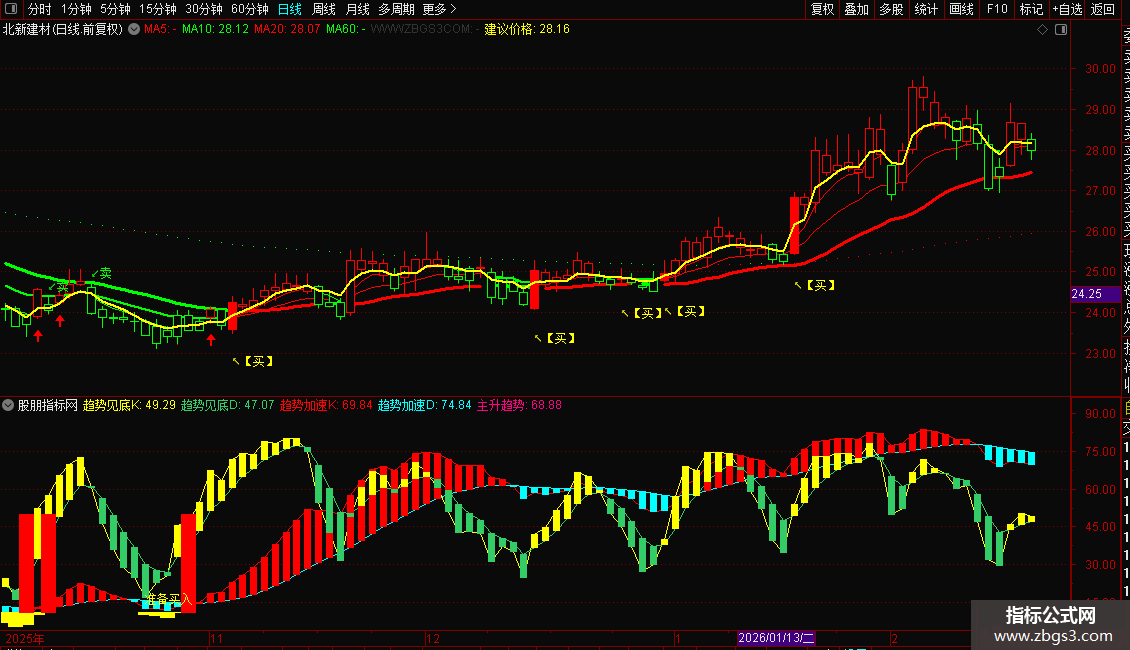 趋势加速K:SMA(ZBGS32,5,1),COLORRED;