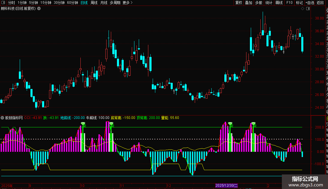 指标是改良版的趋势追踪工具,核心在于捕捉价格的极端反转和背离信号。