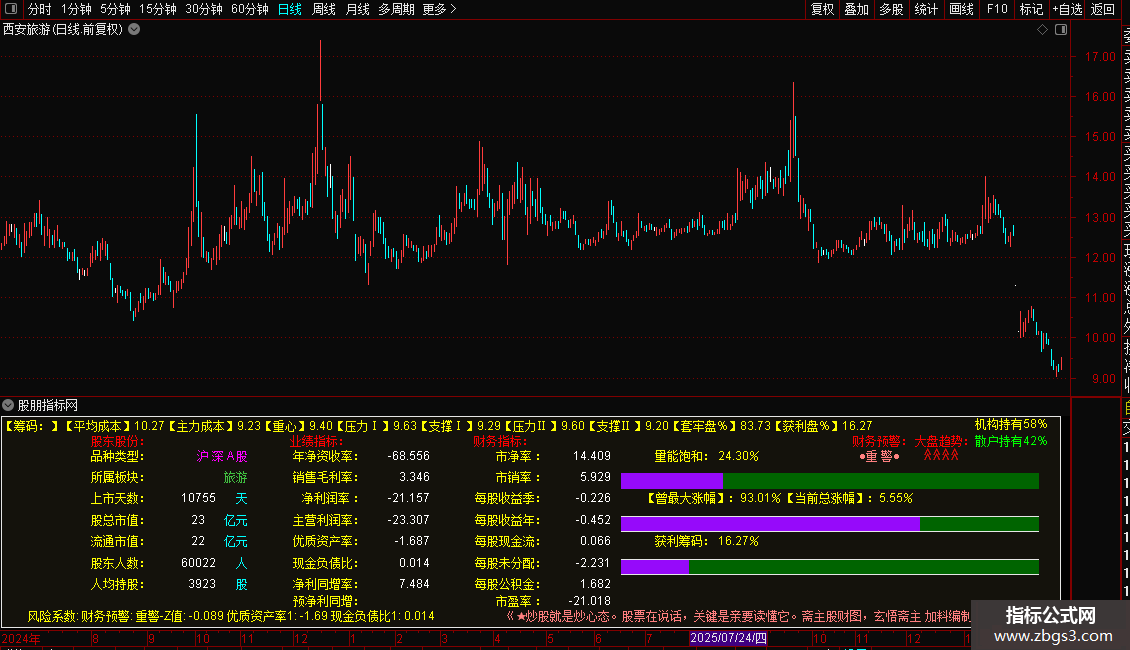 筹码与成本分析:显示当前的获利盘比例、平均成本、主力成本以及关键的支撑位和压力位。