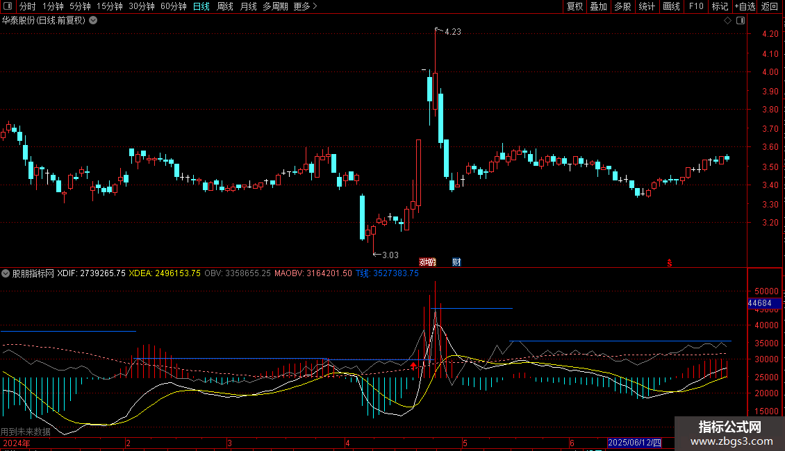 T线:REF(OBV,BARSLAST(D1)),COLORFF6600,NODRAW;