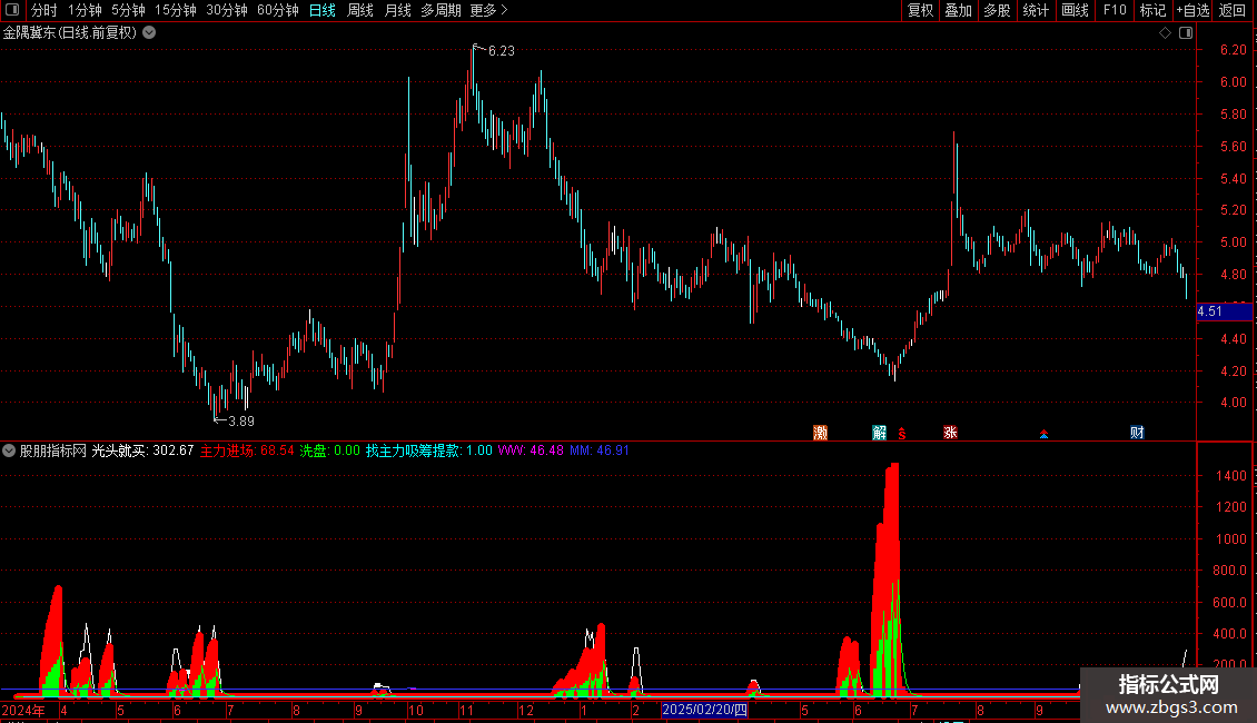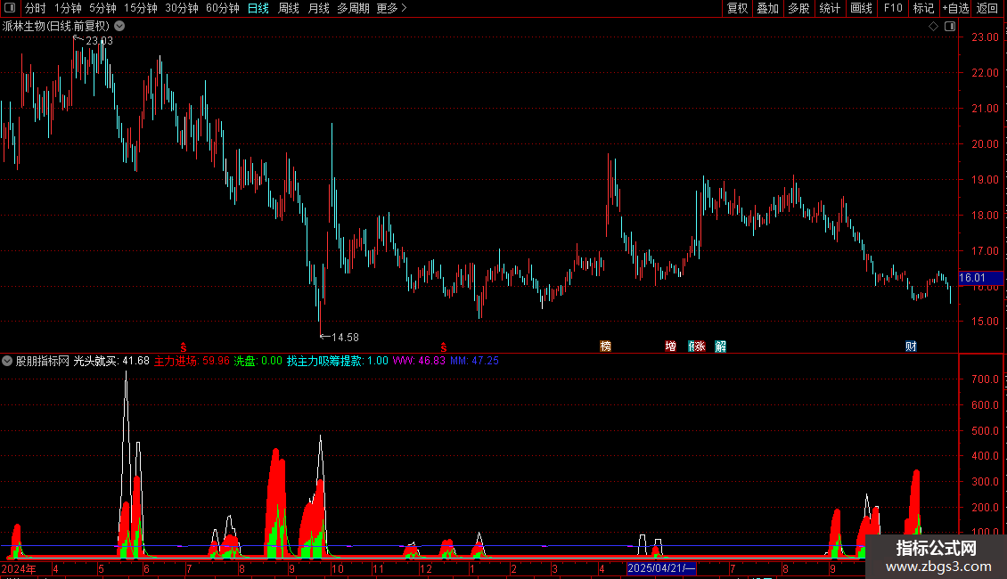 洗盘: 当信号值下降时,以绿色显示,表示可能处于主力洗盘阶段。