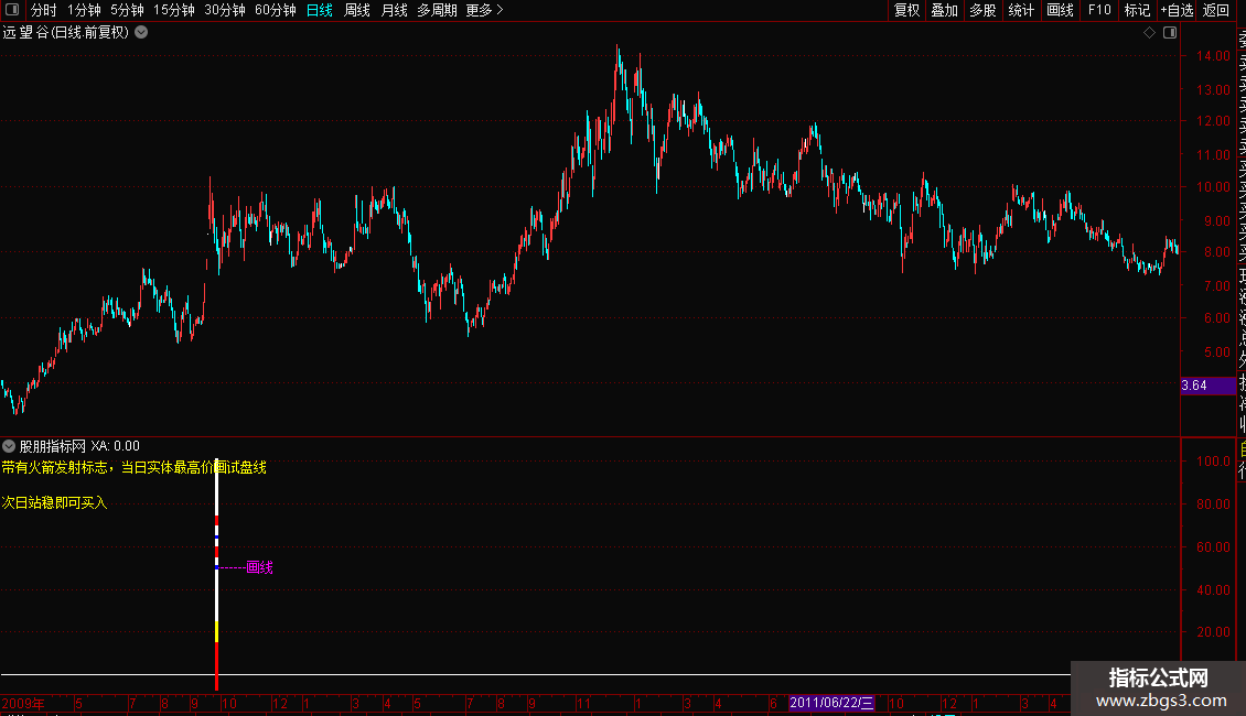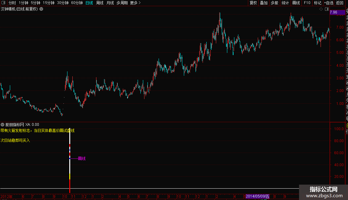 DRAWTEXT_FIX(1,0.00,0.00,0,'带有火箭发射标志,当日实体最高价画试盘线'),COLORYELLOW;