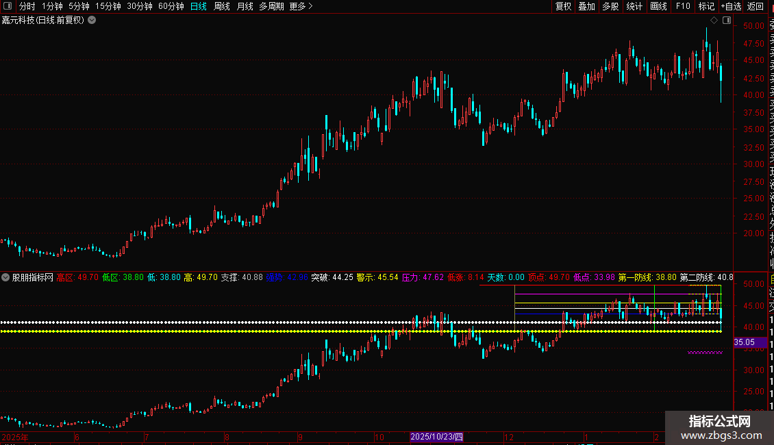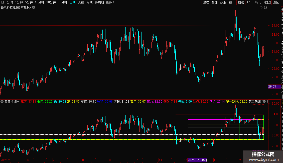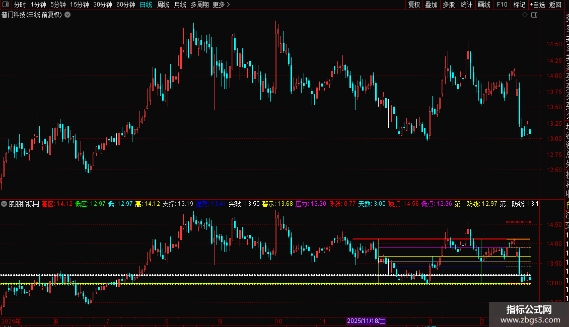 1. 副图公式:导入通达信副图指标后,可自定义参数K(统计周期)、N(显示周期),重点关注“支撑-0.191”“压力-0.809”区间,K线触及低区+第一/二防线是低吸参考,触及高区+压力线是止盈参考;