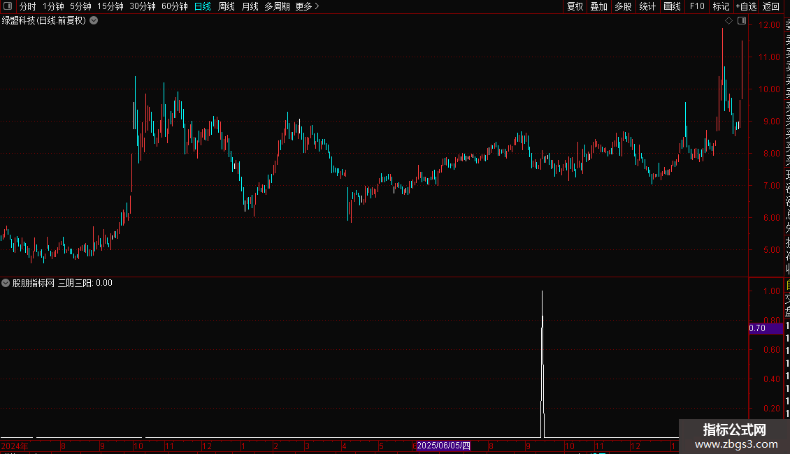 基础信号:=三连阳 AND EXIST(三连阴,10);