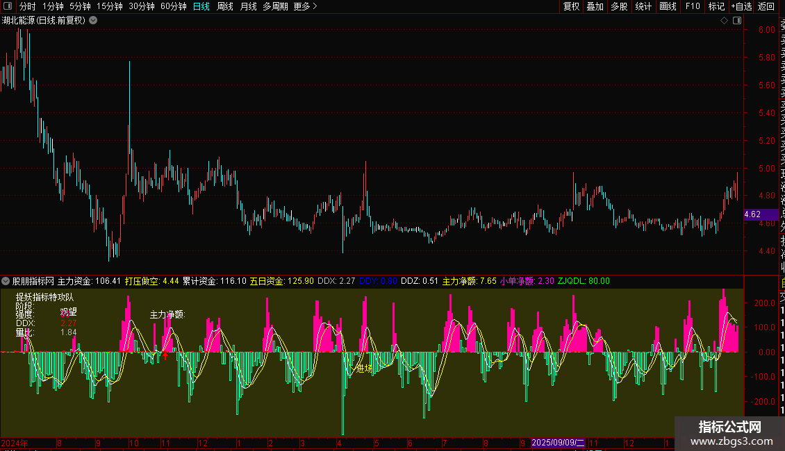 这是一个综合性的主力资金分析指标,主要用于识别股票在不同阶段的资金动向和主力行为。