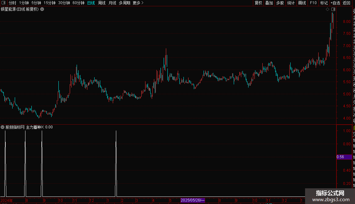 4. 最终信号(主力播种X)的触发条件为:XG10指标前一日低于11,当日上穿11,且当前收盘价低于动态价格区间的中位线。