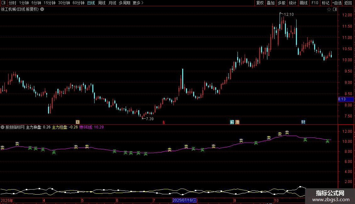 - 特SE线:基于加权价格的多周期EMA均值,反映趋势方向。