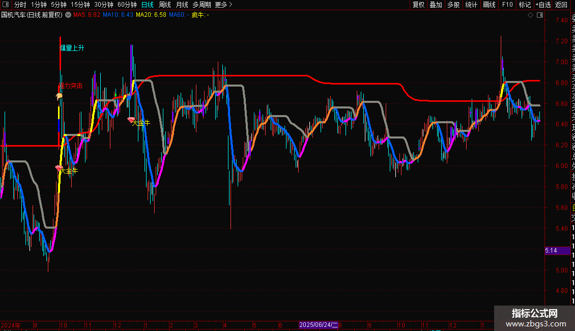 疯牛线:EMA(HHV(集,21),6),COLOR0000FF,LINETHICK3;