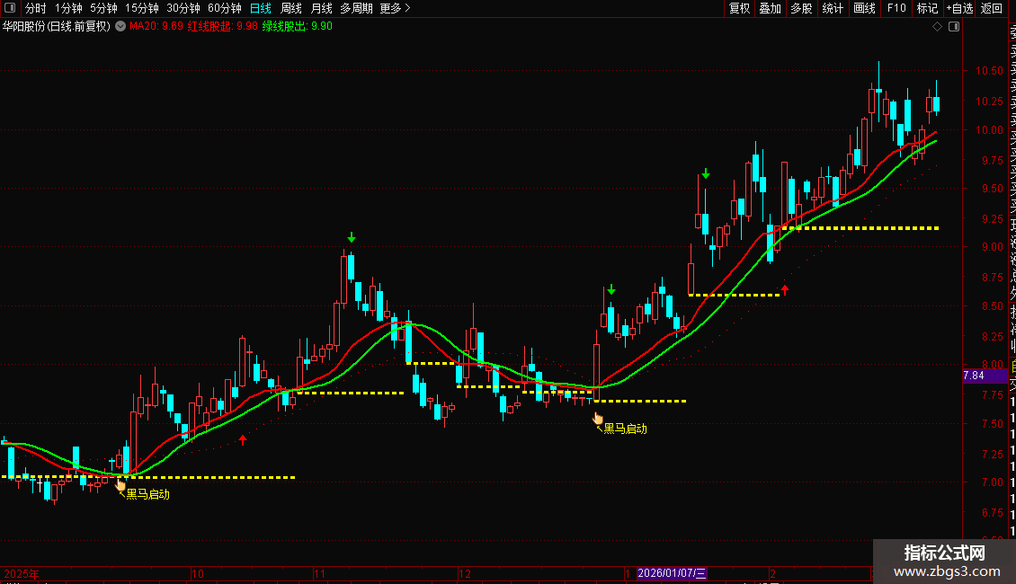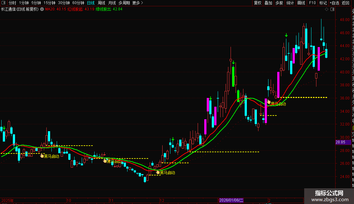 操作策略上,当出现“黑马启动”图标且红色控盘线向上发散时,为最佳买入时机;若高位出现主力出货信号或绿色趋势线拐头向下,应果断止盈。