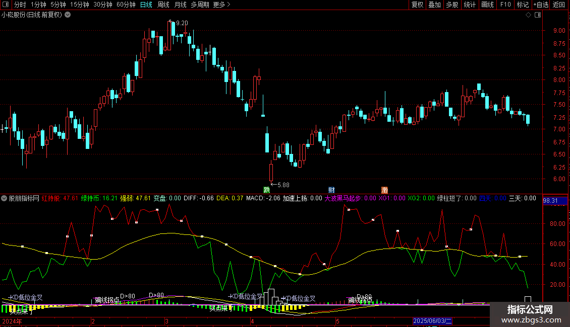 5. 风险提示:在KDJ的D值大于80时标记“D>80”,提示超买风险。