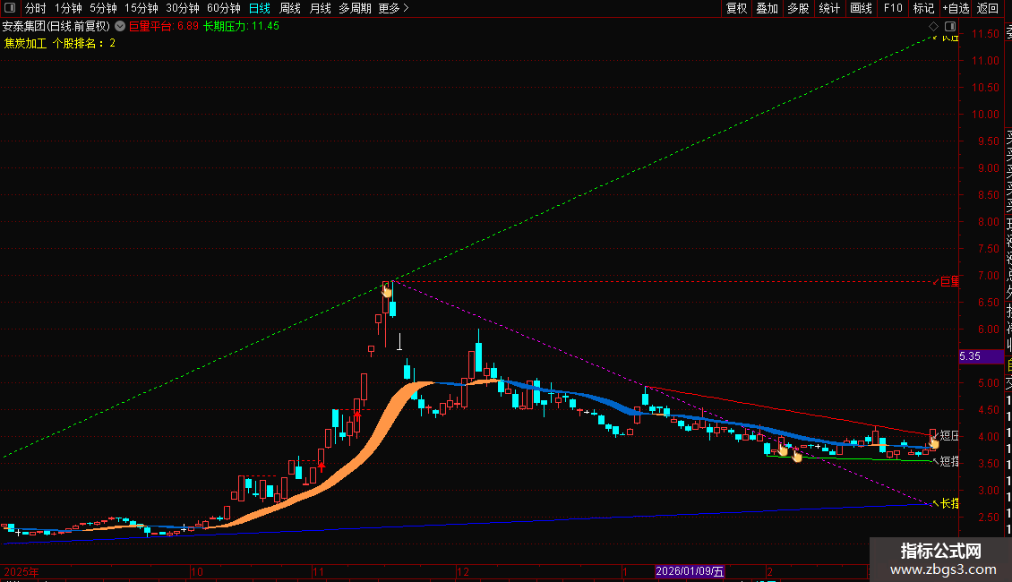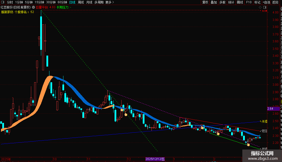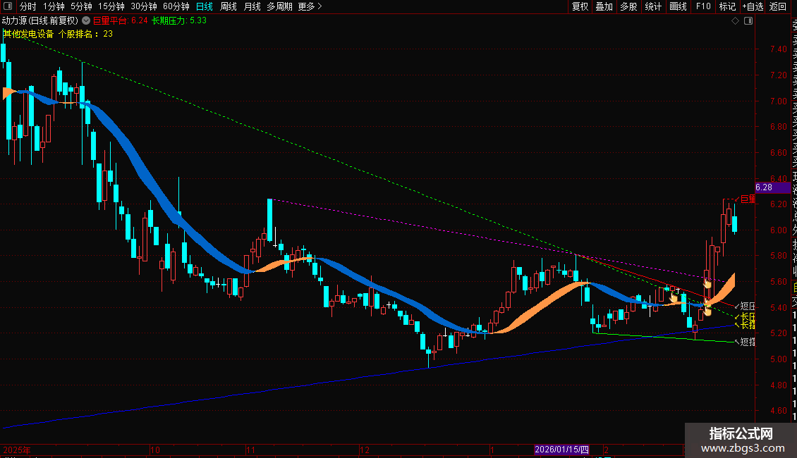 实操中,可重点关注股价突破短压、巨量平台、长期压力等关键画线位置的量能配合,结合DKX多空线多头排列信号布局;若显示“个股弱于板块”,需警惕补跌风险。