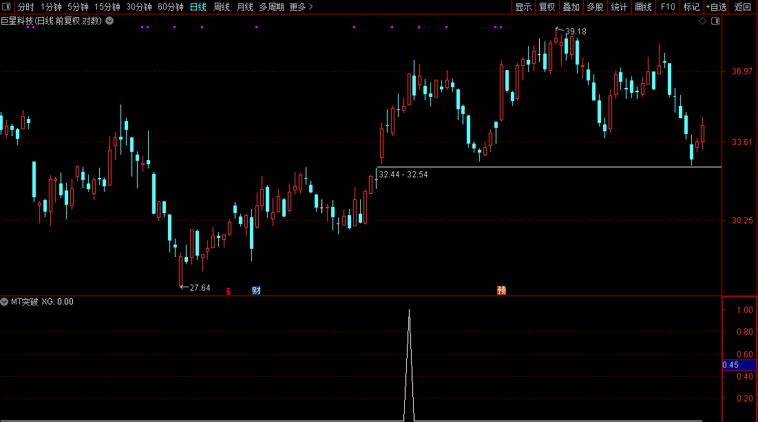 通达信【MT突破】副图/选股金钻指标出票少成功率88%源码
