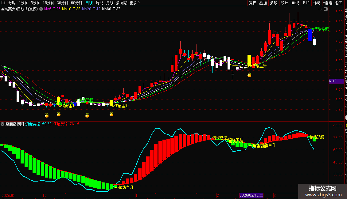 情绪系统主图指标源码如下:
