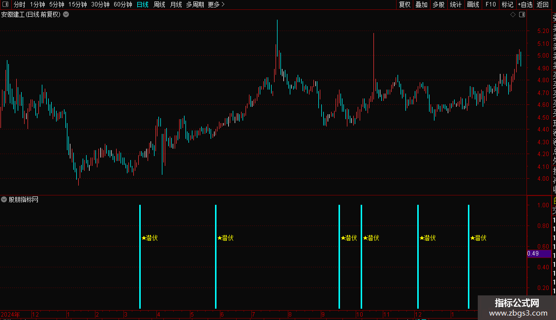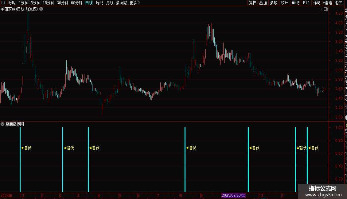 1. 副图指标:在通达信K线副图加载公式,出现“★潜伏”信号时,结合量能判断波段介入点;