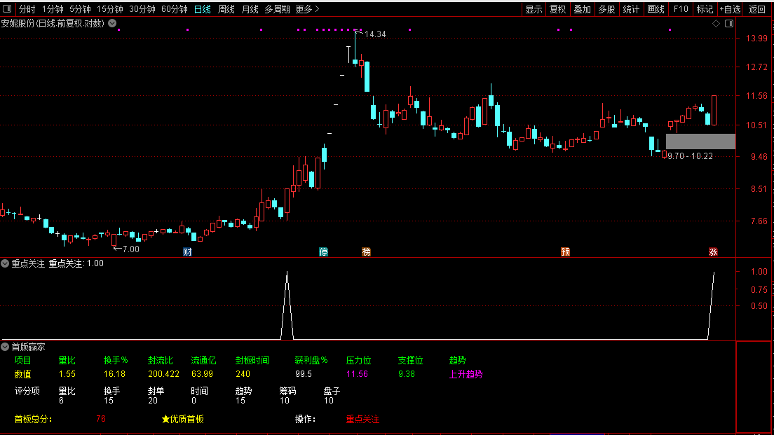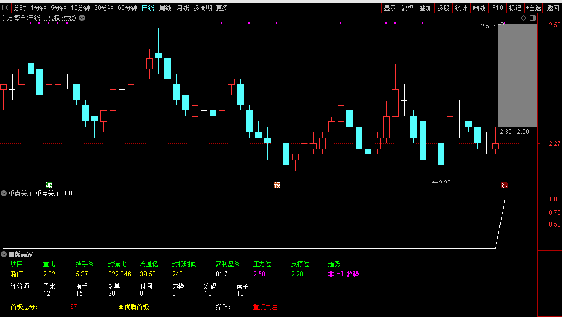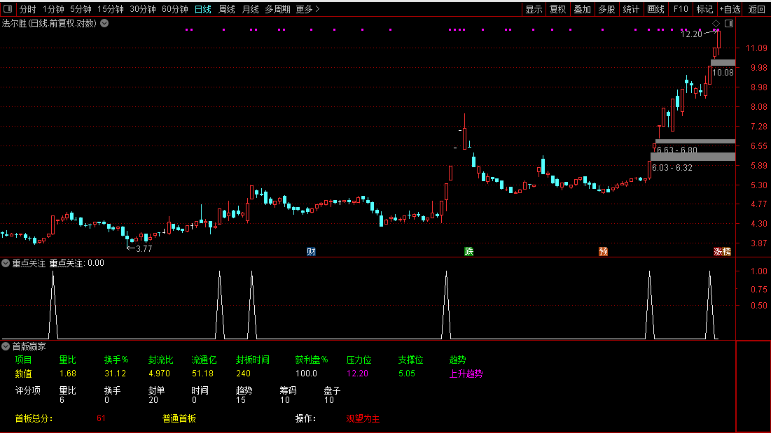 首板自动打分评级公式,通过量化指标判断涨停板是否值得打板,是专为短线打板设计的副图指标工具。