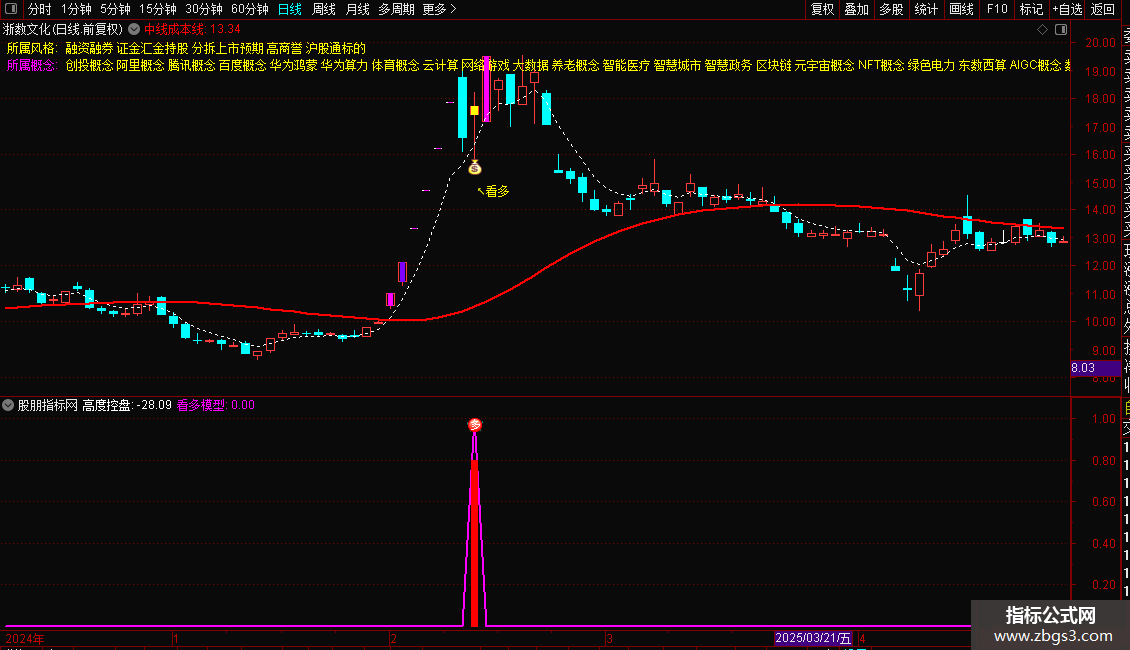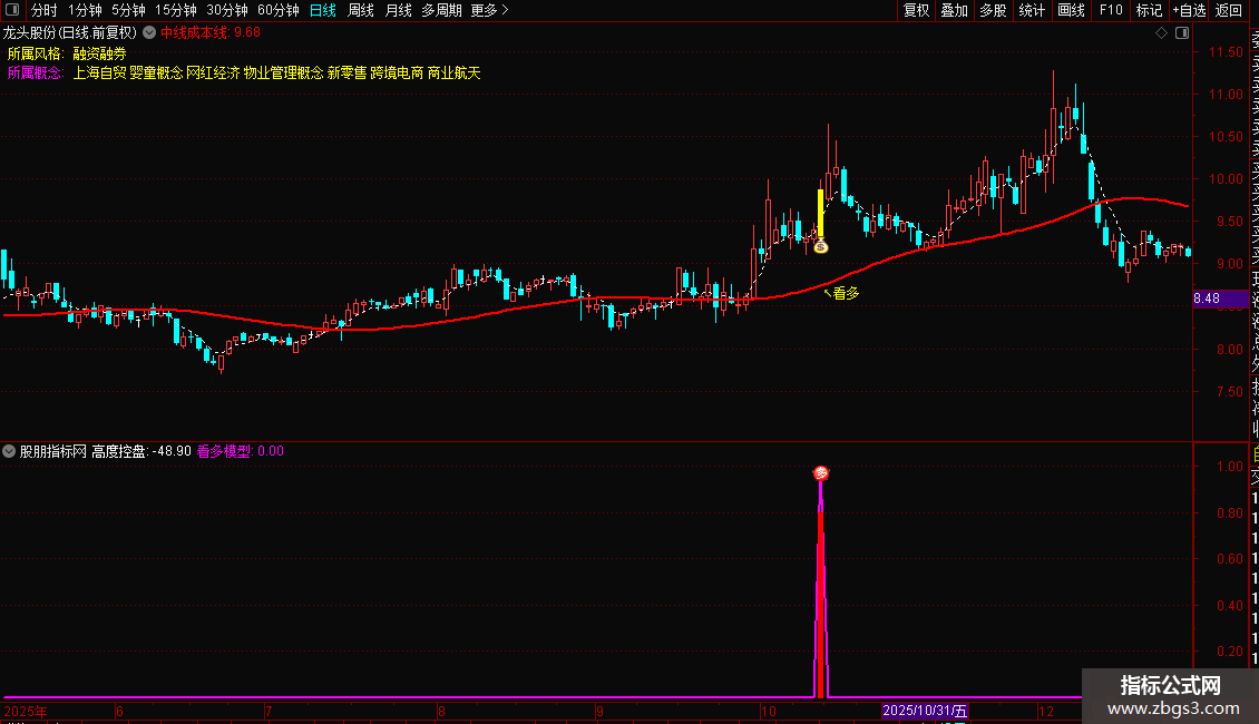 “看多模型”旨在捕捉主力资金高度控盘后的拉升启动点,核心逻辑是结合筹码分布与MACD动量指标进行共振筛选。