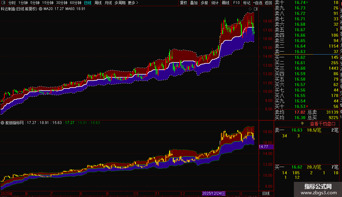 1. 动态通道:基于统计周期内的最高/最低价均值,叠加由真实波幅(ATR)计算出的上下轨,形成动态支撑阻力带。