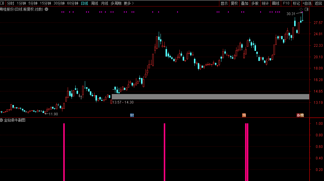 继承一如既往的优秀品质,轻松实现短线暴涨,享受被主力强势拉升的快感。指标能够捕捉庄家主力异动苗头,快速介入后收获丰厚利润;