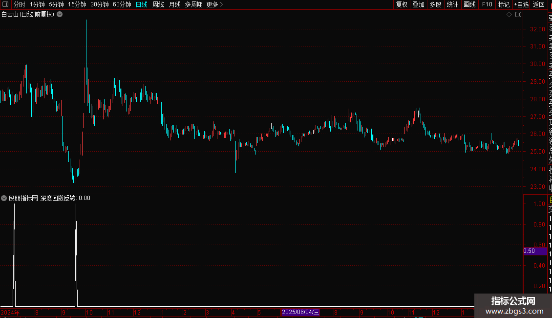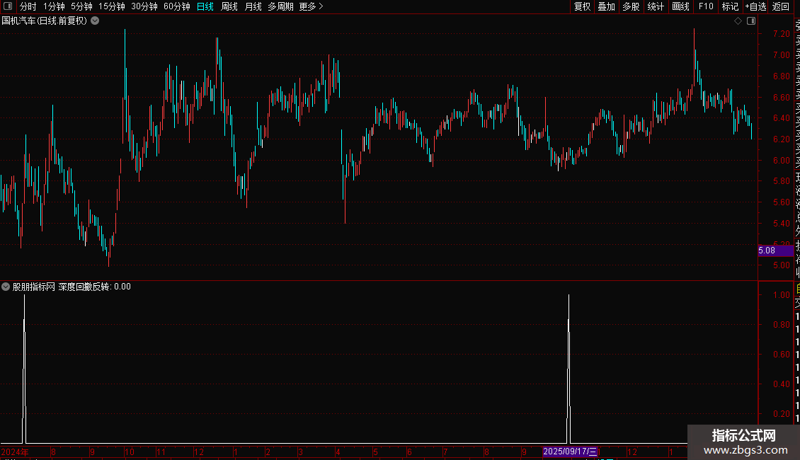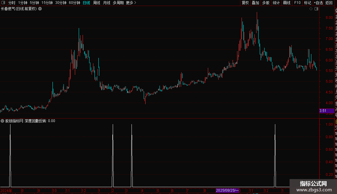 指标专为捕捉超跌后的强力反转行情设计。它结合短期随机指标与长期价格位置,筛选出股价经历深度回调、处于相对低位,且伴随成交量放大和资金流入的个股。操作策略上,当出现“深度回撤反转”信号时,表明空头力量耗尽,多头开始主导,是极佳的抄底或波段买入时机,适合博取反弹收益。