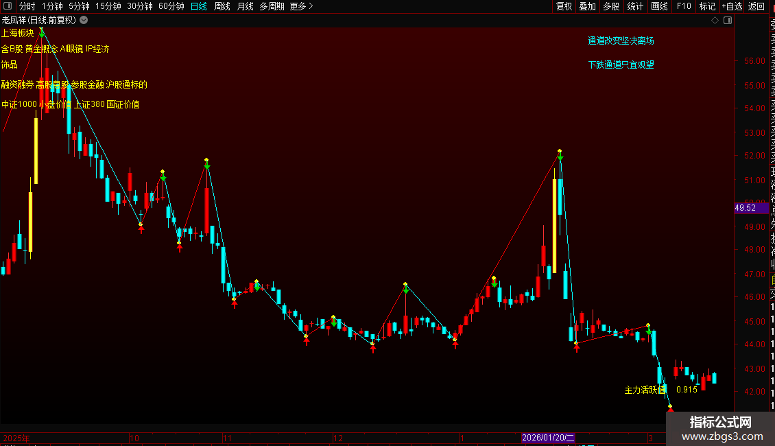 这款主力活跃主图指标是专为通达信打造的实战型股票分析公式,融合主力资金活跃度、量价趋势、多周期均线共振等核心维度,既能可视化呈现个股所属行业/概念板块,又能通过立体K线、动态文字提示,精准判断股价强弱、主力行为及买卖时机。