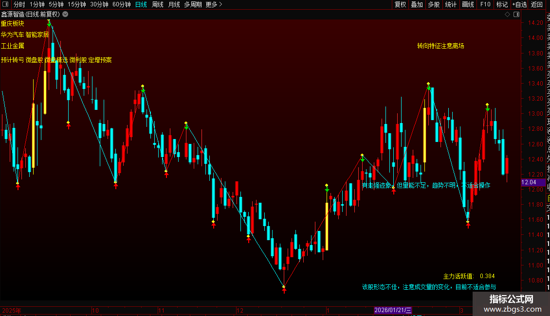 该指标适配短线/中线交易,兼顾大盘与个股联动分析,新手可直接按文字提示操作,老手可结合主力活跃值进一步验证趋势。