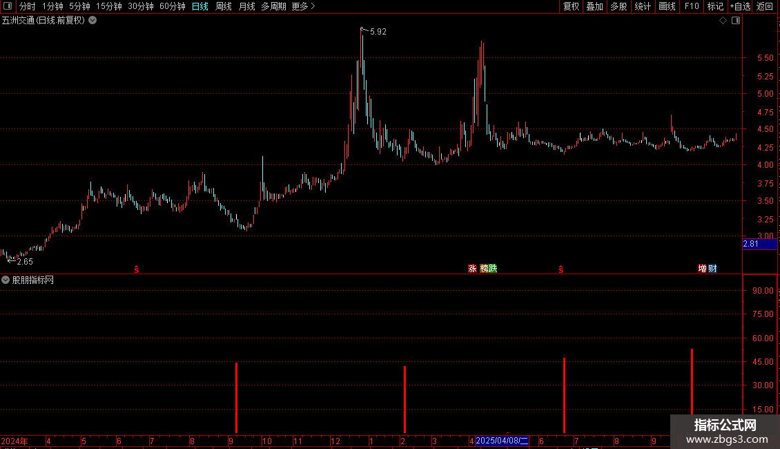 最终,当上述条件在5日内首次同时满足时,在副图以红色柱状线标记信号,柱线高度代表过滤后的成交量强度。该信号旨在提示价格在特定超跌和波动收敛后,可能伴随量能变化出现反弹。