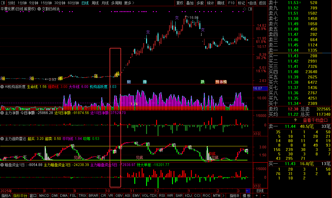 指标飙升/突破阈值:代表该股的活跃度突然增加,疑似有机构资金开始调仓或建仓。