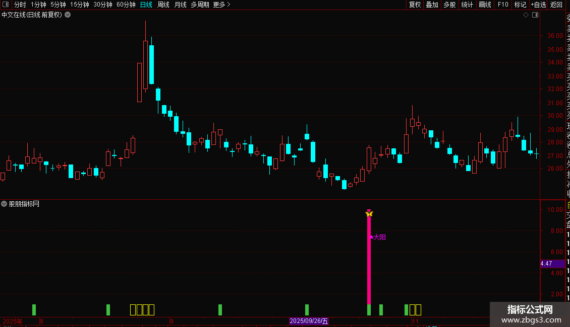 DRAWTEXT(B1 AND 伏,7.4,'★大阳'),COLORMAGENTA;
