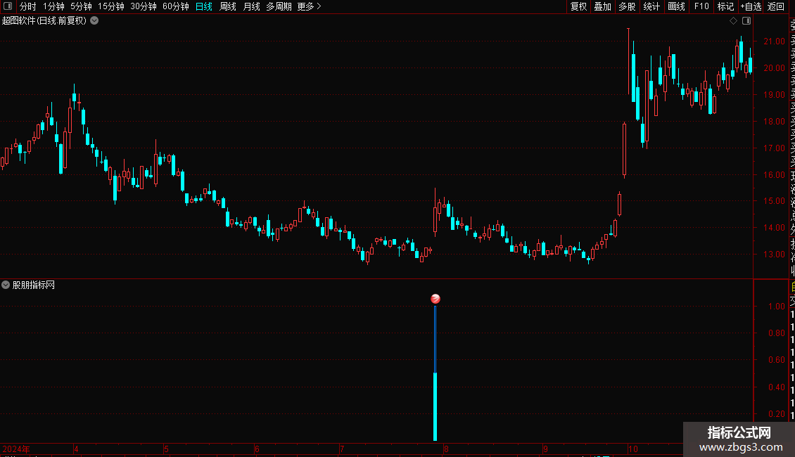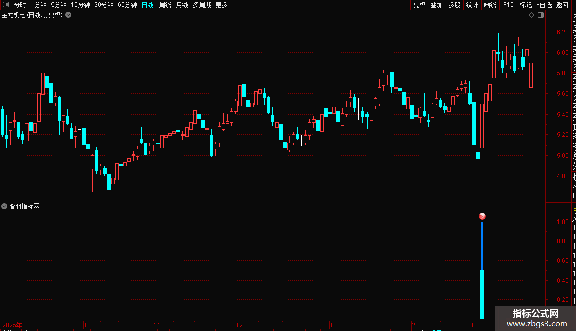 指标旨在捕捉短期超跌后的强势反弹机会。主要功能是通过监测股价与均线的偏离度及动量变化,识别主力洗盘结束的瞬间。操作策略上,当股价经历连续小幅回调或快速杀跌后,一旦突然出现大幅上涨并伴随指标发出彩色柱状及图标信号,即为最佳买入点。这通常意味着空头力量耗尽,多头开始强力反攻,适合激进型投资者进行短线狙击,博弈快速拉升行情。