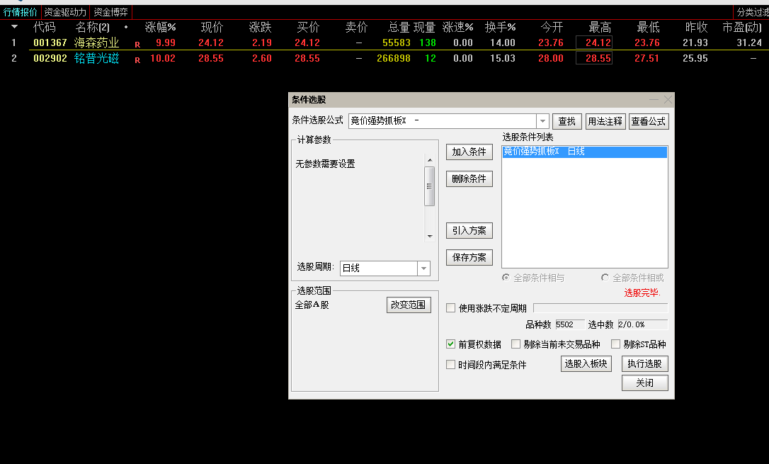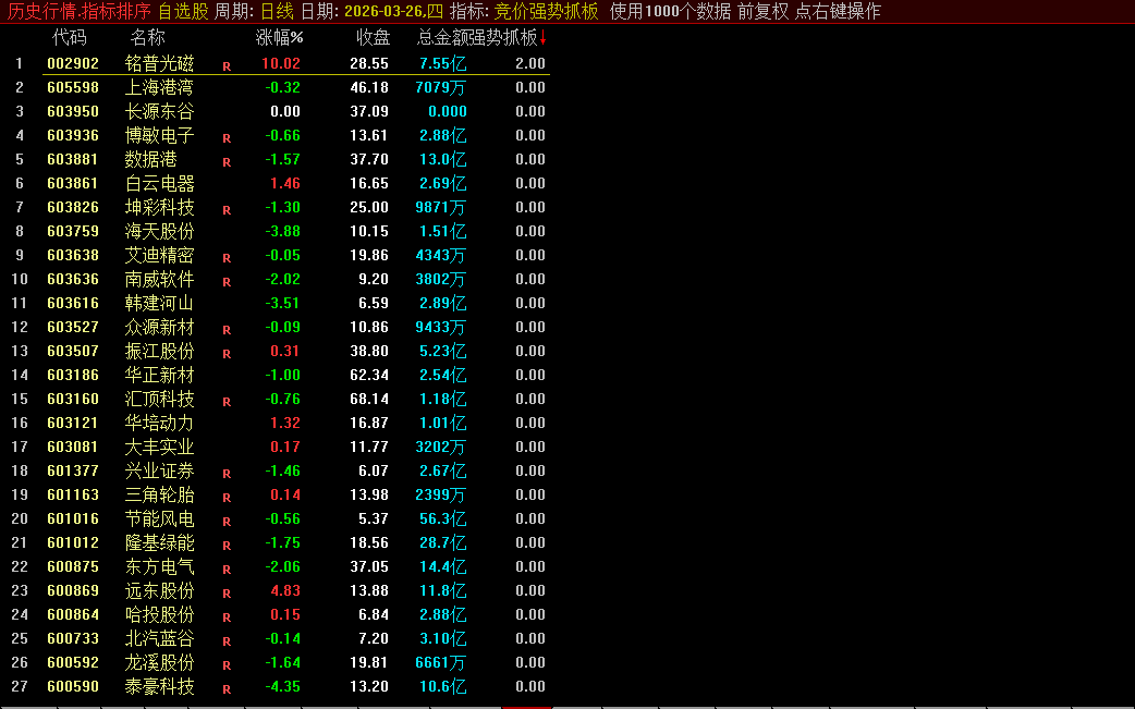 通达信【竞价强势抓板】竞价/选股多维度量化市场筛选竞价强势股源码