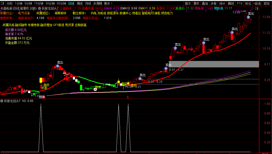 总结:该指标量化主力操盘痕迹,全程监控从低位吸筹(潜龙在渊)、拉升前洗盘(龙回头)到急速拉升(妖股突破)的全过程。