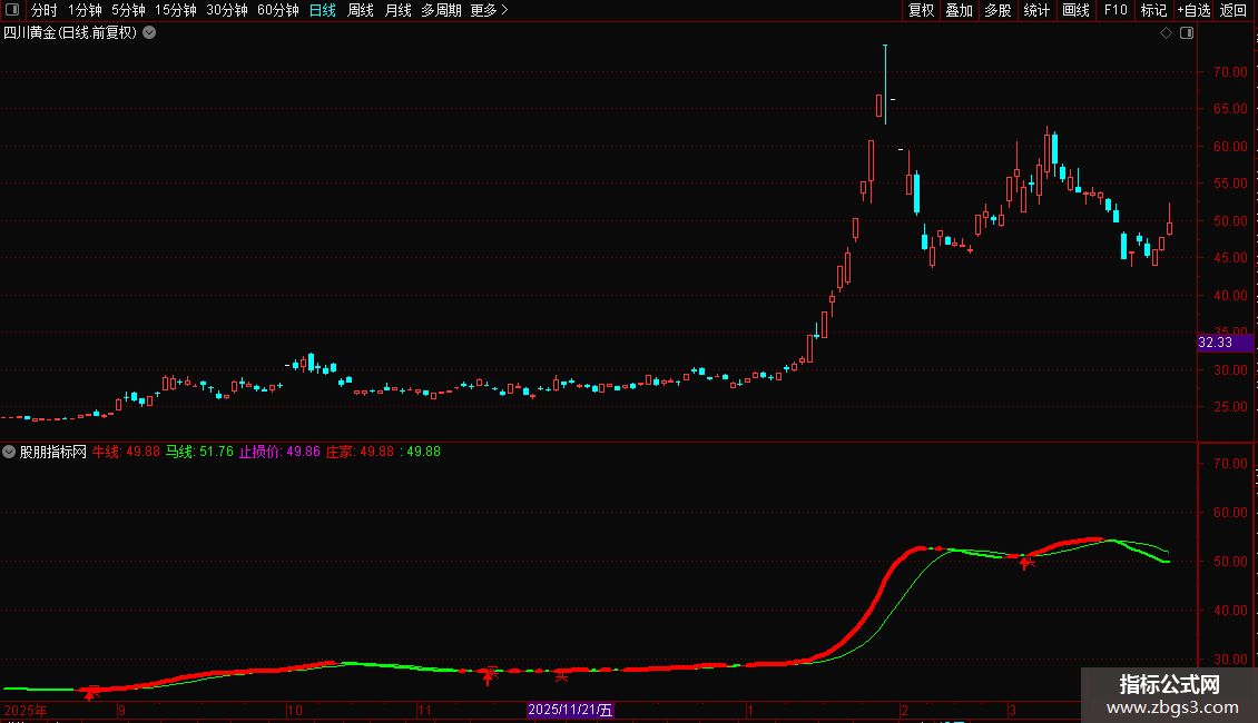 1. 牛线/庄家线:基于价格中值的复杂加权均线,反映价格趋势核心。