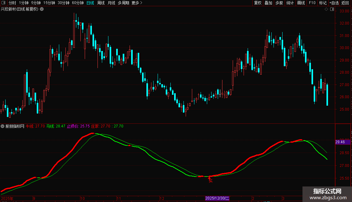 4. 趋势可视化:庄家线用粗红/细绿线直观显示其涨跌方向。