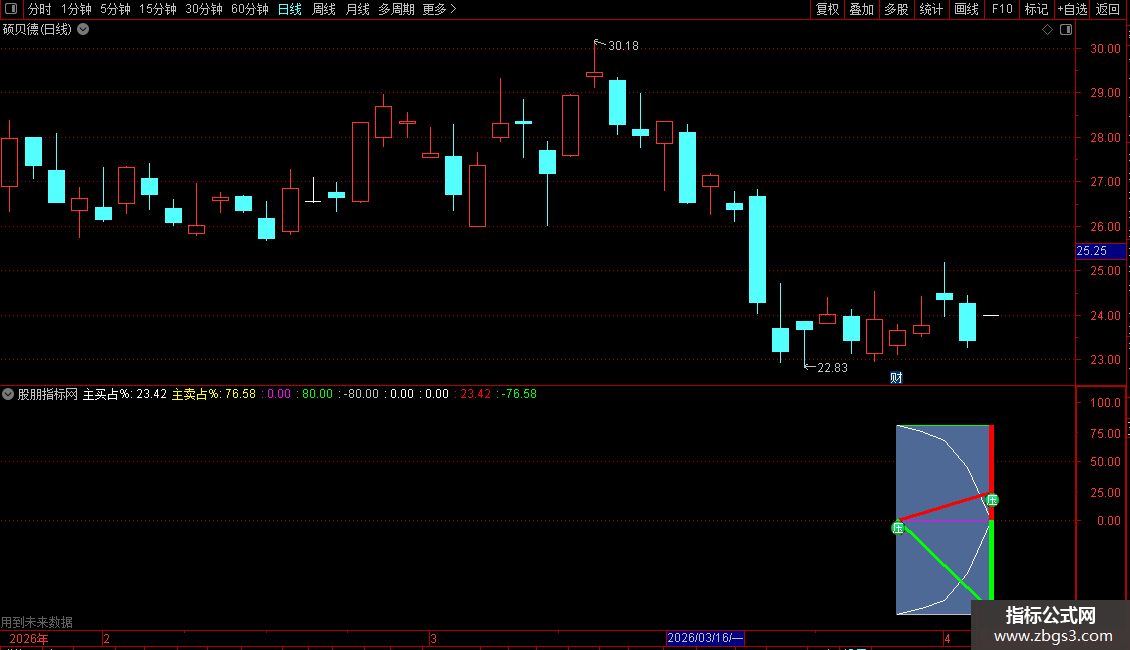 这是一个用于分析个股分时图中主力资金流向的指标。它通过计算主动买入和主动卖出的成交量占比,并以图形化的方式在分时图下方展示。
