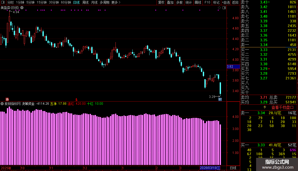 2. 计算“决策资金”,即所有分类的买卖净额总和,反映主力与散户的综合资金流向。