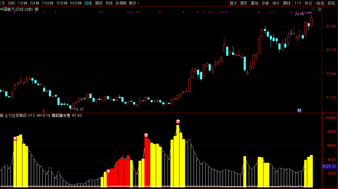 本指标主要对筹码集中度有直观的反应,帮助大家通过筹码,来预判是否接下来会拉升。我一直认为筹码才是股票拉升的核心指标。