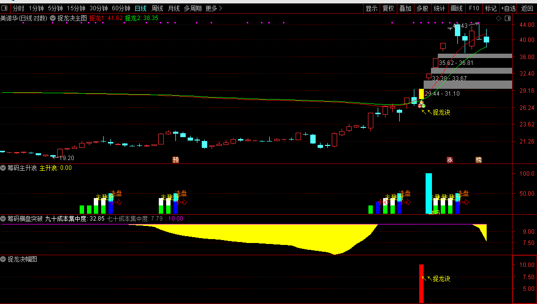 捉龙决共振包括1主3副2选股。用法是设置为预警公式,盘中有信号自动弹出!