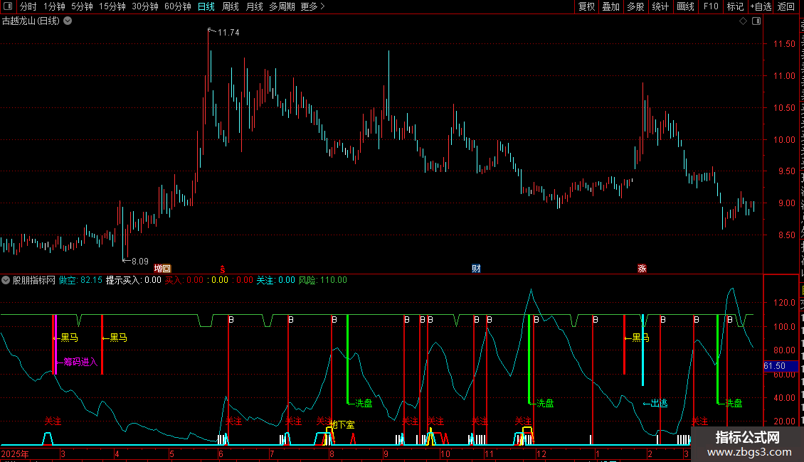 2. 副图核心看“买入/黑马/出逃”信号,聚焦“关注/地下室”抄底机会;