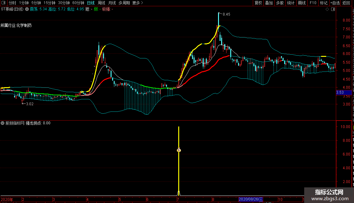 STICKLINE(强龙拐点,0,10,2,0),COLORYELLOW;