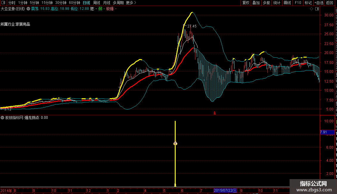 1. 主图:看均线颜色判趋势,青色区域为弱势区间,红黄色均线为强势拉升区间;