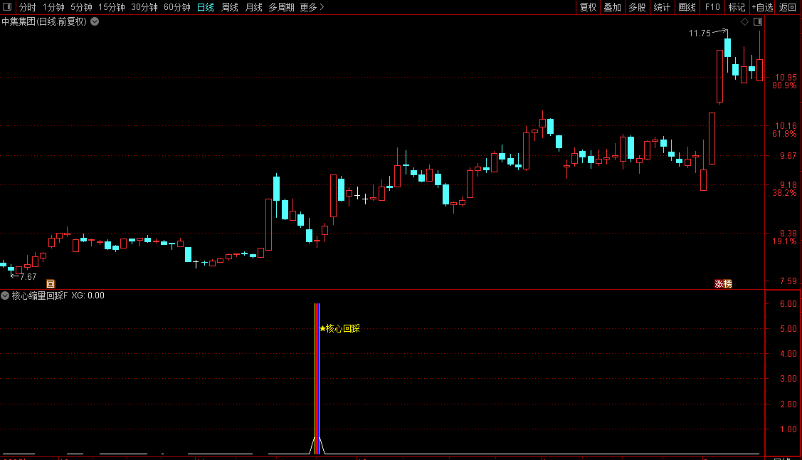 通达信【核心缩量回踩】副图/选股涨停基因拉升后出现极度缩量形态源码