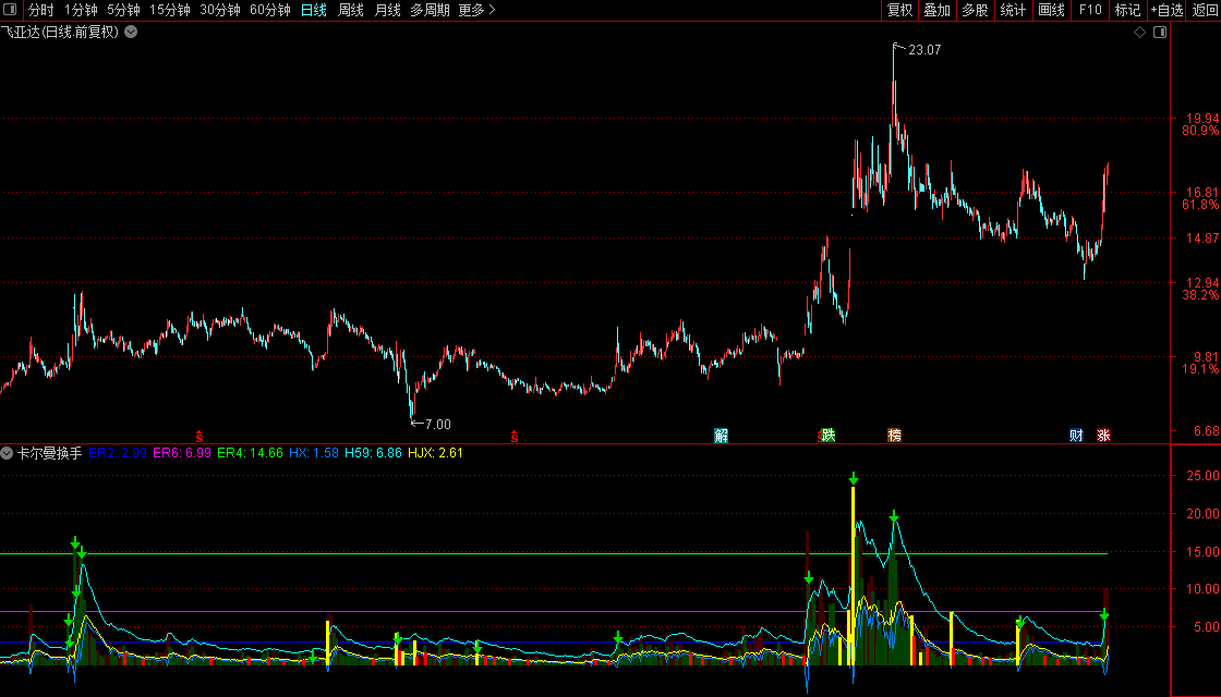 通达信【卡尔曼换手率】副图监测AI异动换手精准位置源码