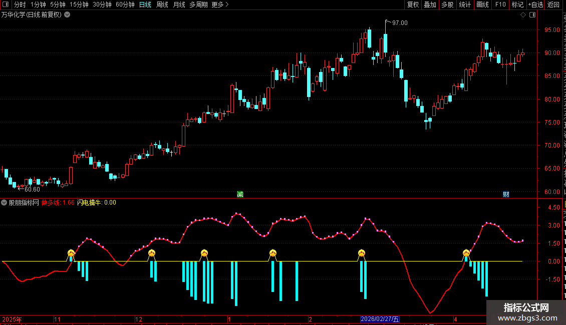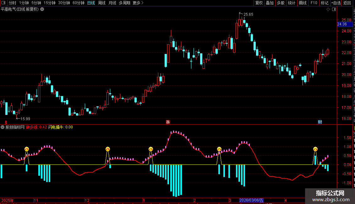 指标通过融合价格、成交量与成本,综合判断个股的做多动能与主力强度。当“做多线”由负转正并持续上行,且“主力强度”柱状线同步放大时,表明多方力量占据主导,是潜在的介入时机。当出现“闪电擒牛”信号时,意味着股价短期动能强劲,可能迎来快速拉升,可视为短线追涨的参考。操作上,宜在“做多线”金叉向上时关注,结合“主力强度”确认,并在出现“闪电擒牛”时把握加速机会。